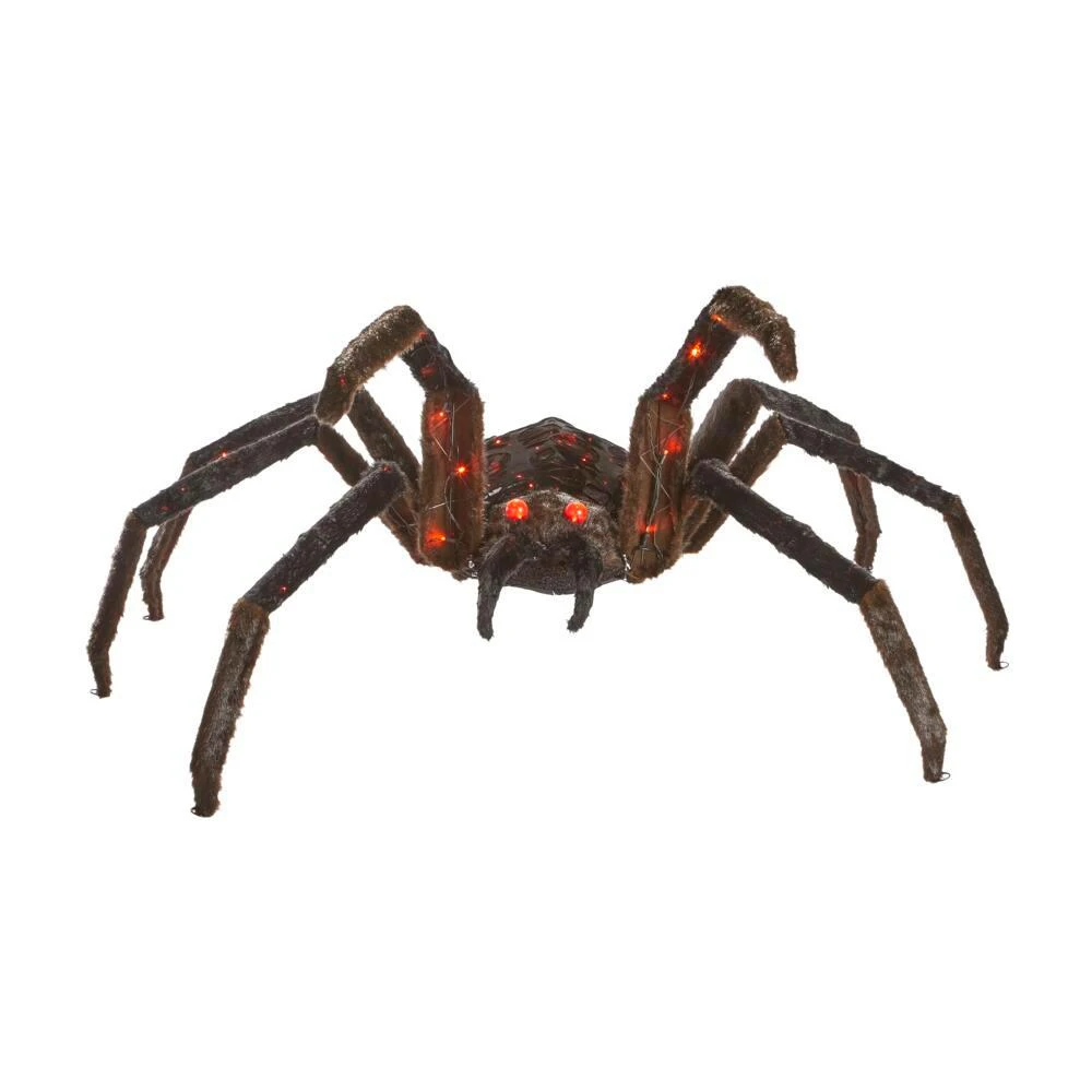 Featuring 120 LED lights with an orange glow, this 4 ft. Jungle Spider is a great addition to your Halloween yard décor. It may require more than 1 person to help assemble. The frame of this item is sturdy metal and covered in weather resistant material for lasting use.